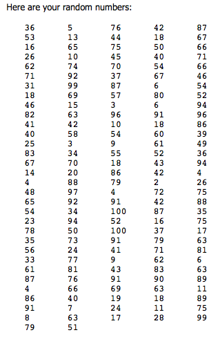 Let’s say you interviewed or received information from 157 people in your neighborhood. I used a random number generator from random.org to get this dataset of ages: