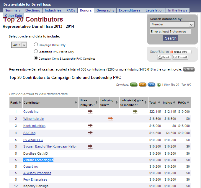 1. Yes, that $29,800 donation is going to Congressman Issa too | Left Brain Right Brain - September 15, 2013