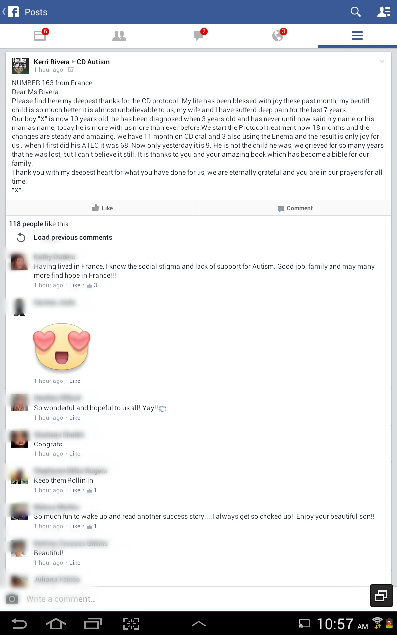 As it turns out, there is no #163. This child, the one who was miraculously healed,  does not exist.  This story was fabricated by someone questioning the authenticity of Kerri Rivera’s claims.  As suspected,  Ms. Rivera took credit and used this story as further “proof” that CD can cure autism.  You can read the entire account of how this went down here: