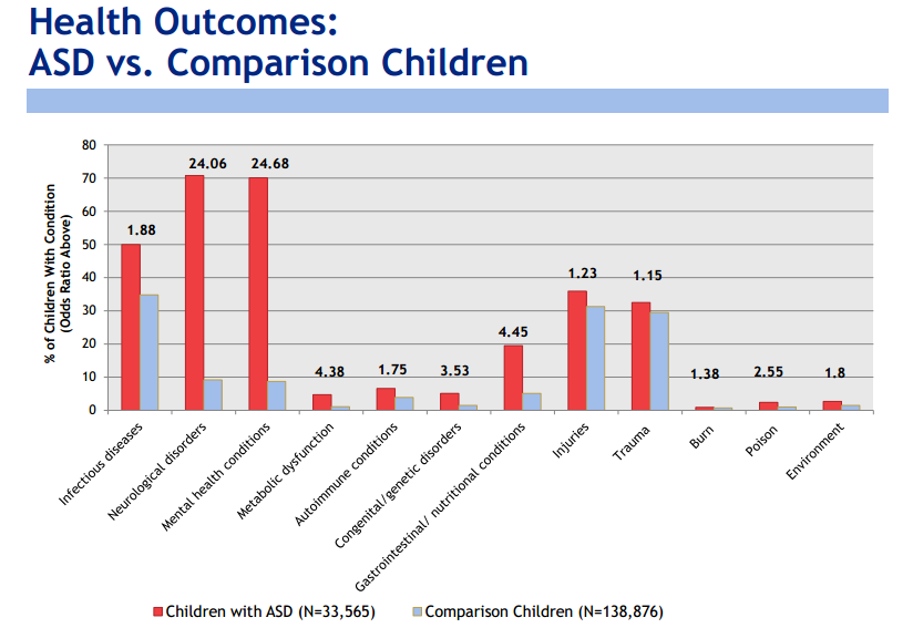 In an outbreak people with developmental disabilities are at heightened risk of becoming infected. Autistic children are nearly twice as likely to see a doctor for an infectious disease visit than a non autistic child. (click to enlarge)
