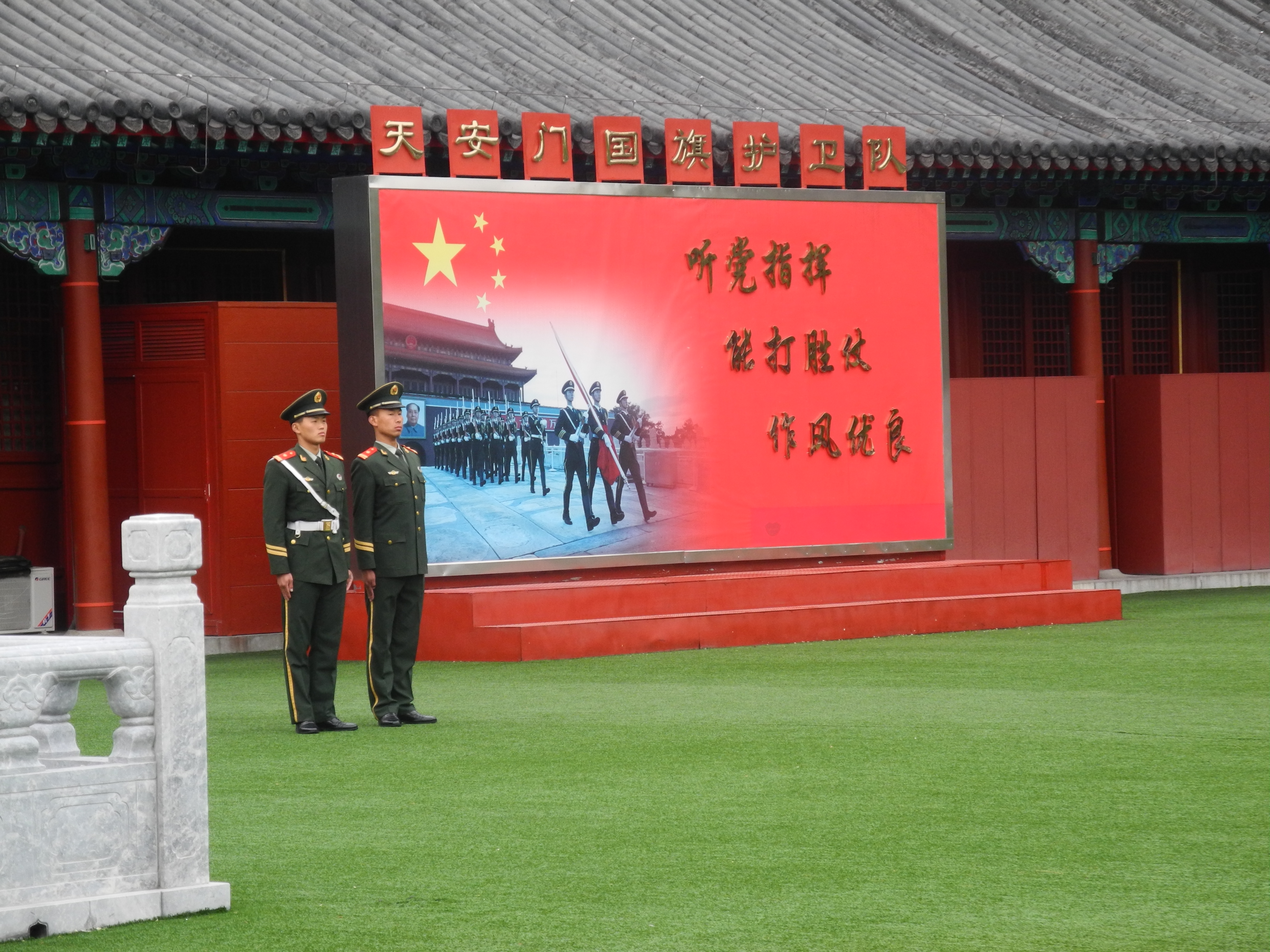 After you pass through the first two gates, at the entrance to the Forbidden City, just across from the Palace Museum ticket booths, there is a small garrison.
