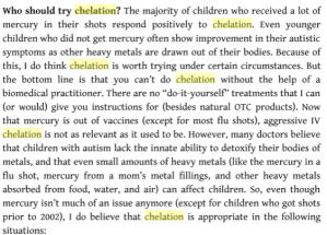 Dr. Bob promotes chelation, among other dubious ‘treatments’. Here is but one paragraph from his book: