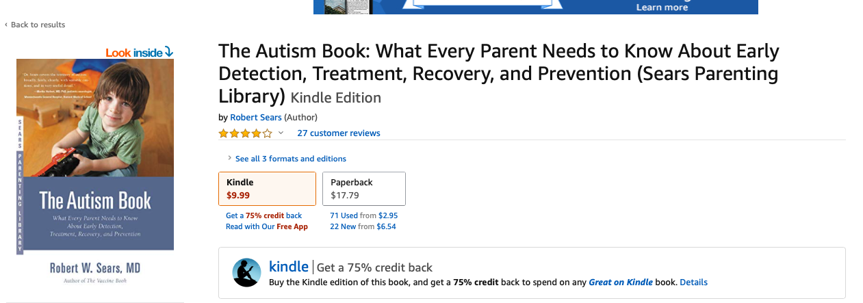 As the parent of an autistic child, let me start by saying “Thank You, Amazon, for removing books with harmful fake autism treatments from your offerings.” Seriously. One great example is Kerri Rivera’s book on using bleach to “treat” autism.