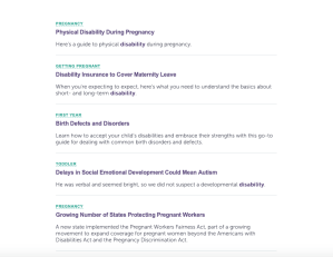 Here’s what I noticed–the first two hits are for (1) having a child while disabled and (2) disability insurance for maternity leave. Only when we get to (3) are we seeing disability for the child. And this is under “first year”. We really need to be educating people about disability before pregnancy. During pregnancy. You can’t fully prepare for the news that your child is disabled. But, then again, you can’t fully prepare for life with any child. What you can do is do some preparation.