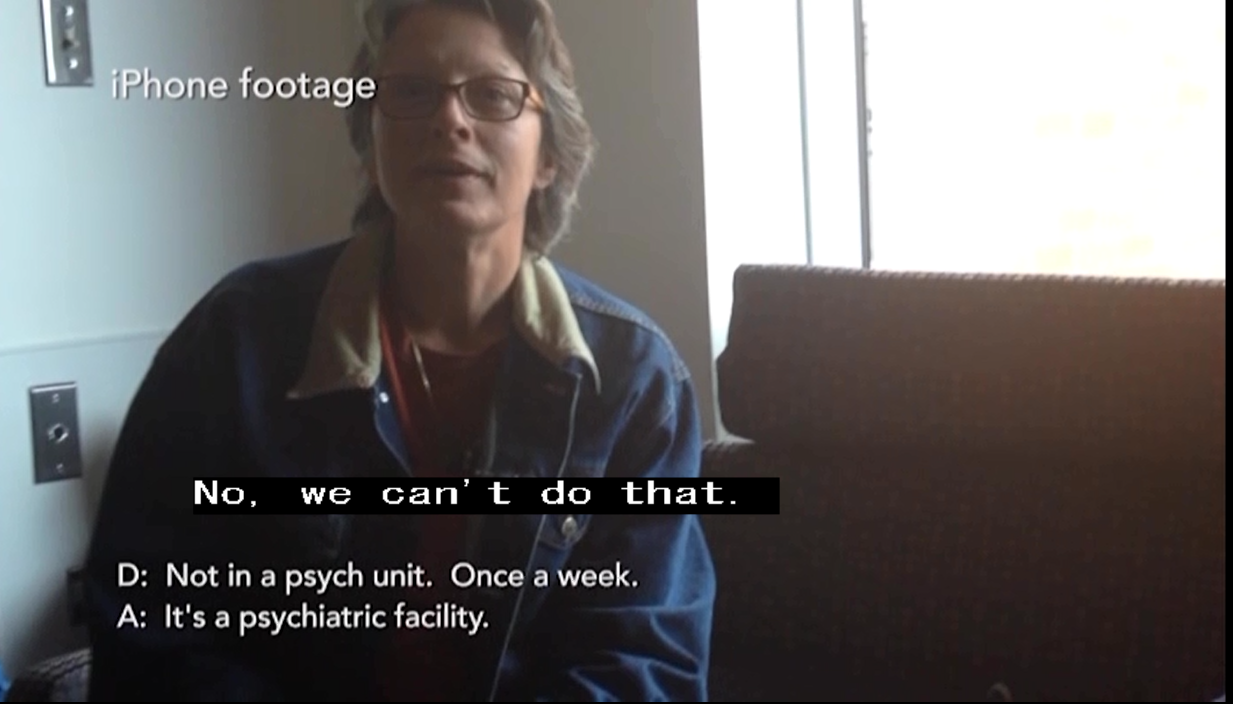 “Who Killed Alex Spourdalakis” is not a true documentary in that the film makers were a part of the story. It appears to have started out as part of their “Autism Team” reality TV show project. Mr. Wakefield’s “Autism Team” was not just standing back and documenting events, they were acting as advocates and advisers to Alex’s mother. For example, they put Alex’s mother in contact with Arthur Krigsman (pediatric gastroenterologist and former colleague of Andrew Wakefield) and arranged transporation for Alex to be seen by Dr. Krigsman. Roughly a week before his death, Alex was in the hospital again, where he was visited by the “Autism Team” in the person of Polly Tommy and it sounds like Andrew Wakefield. Alex’s mother discusses how they’ve been offered a placement in a psychiatric facility, but this would involve Alex being separated from his mother and godmother. A separation we now know was necessary to save his life. In this screenshot we see subtitles for Alex’s mother stating “not in a psych unit. Once a week” (referring to the chances to visit Alex). The godmother is stating, “it’s a psychiatric facility”. And the closed captioned words belong to Polly Tommy who is stating, “No, we can’t do that”. We? The Autism Team are documenting themselves as part of the story.
