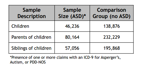 The Lewin Group study population was large and included a large cohort of siblings of ASD kids: