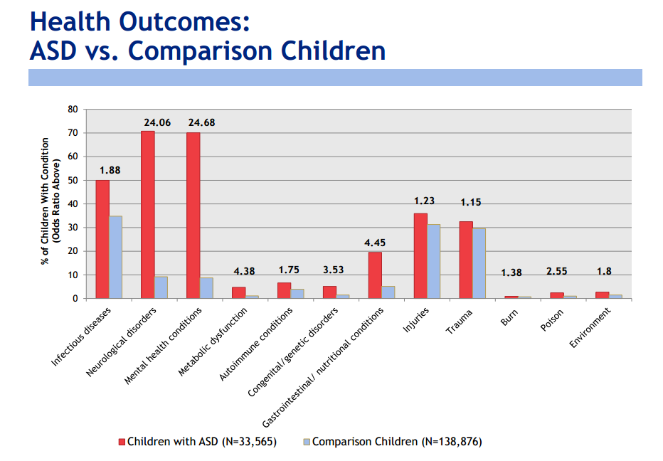 About 70% of ASD kids have neurological disorders. About 70% have mental health conditions.