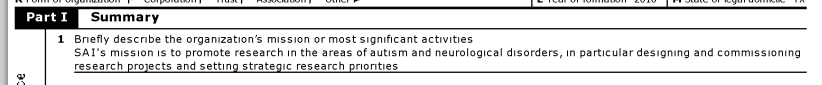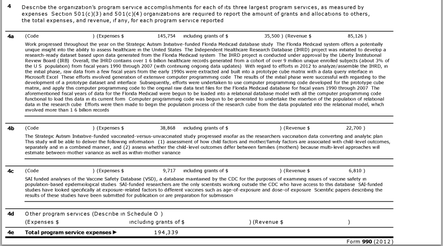 So, let’s consider this. In three years, Mr. Wakefield managed to give out 4 grants. Total of about $80k in grants. And for that effort he was paid $316k. What’s the supposed goal of the Strategic Autism Initiative?